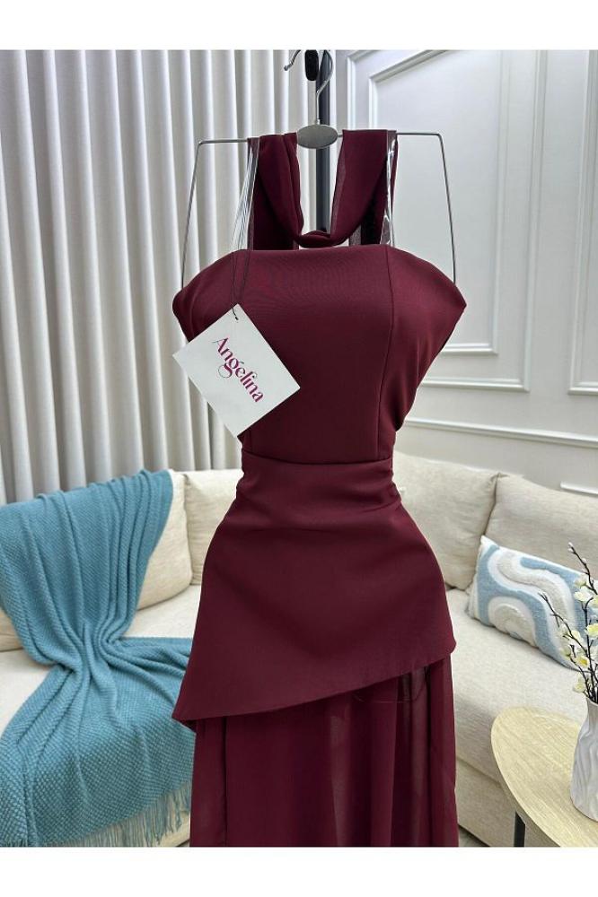 - التصميم بدون أكمام يبرز الأكتاف ويمنح طابعاً أنثوياً وراقياً