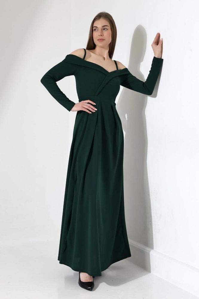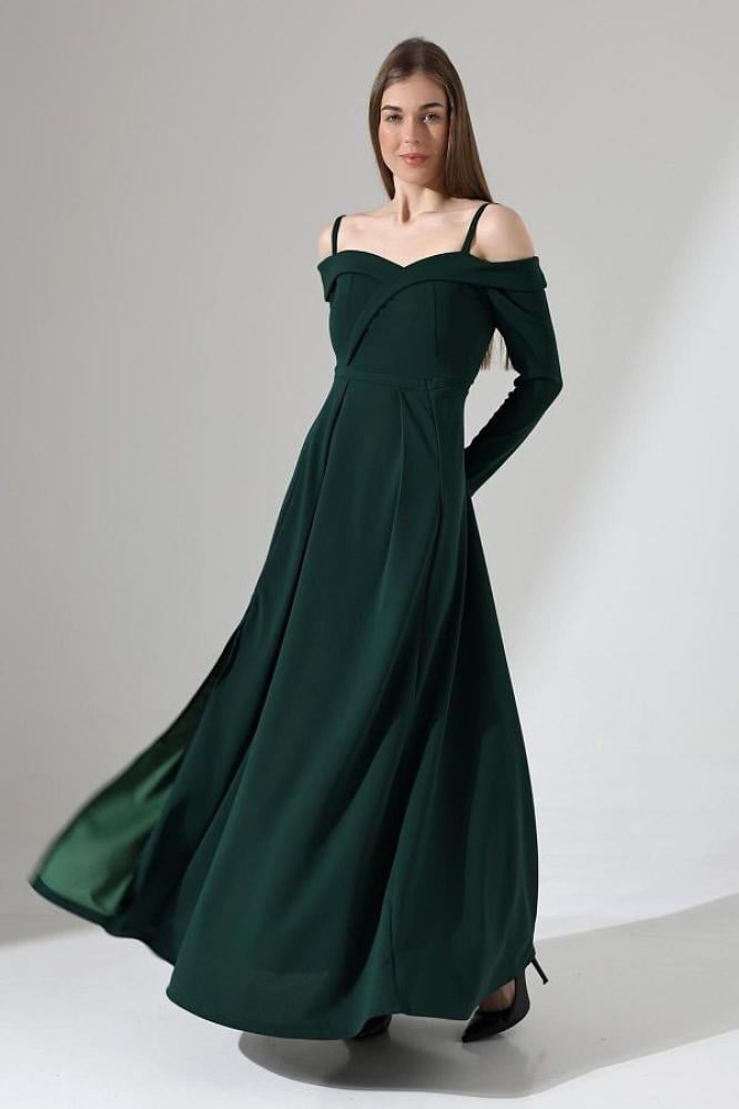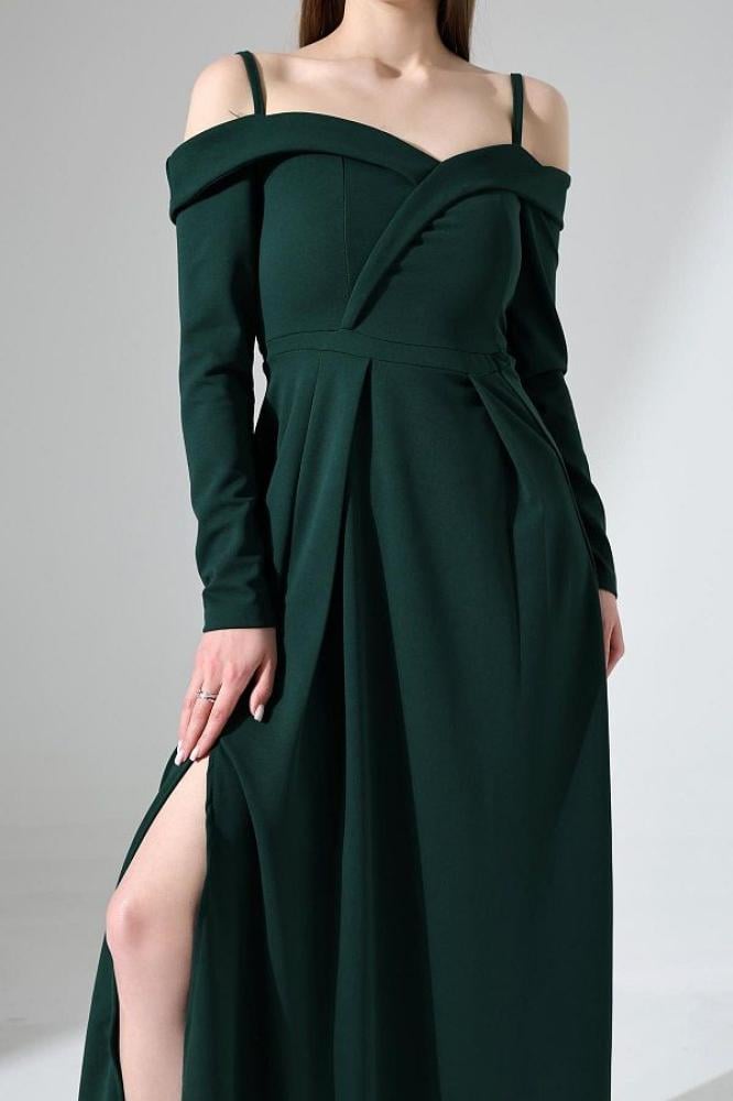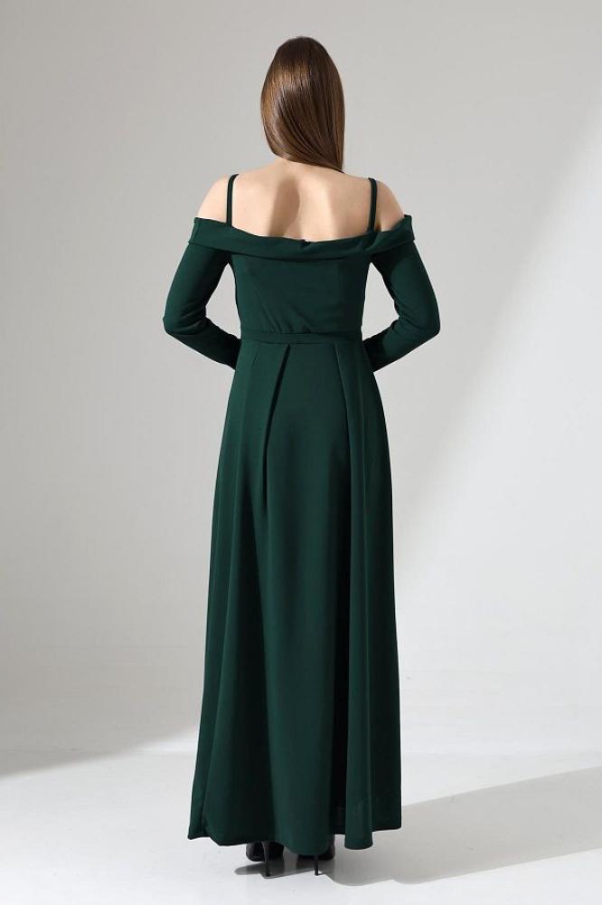 - اسم المنتج: فستان سهرة طويل باللون الأخضر الزمردي بفتحة جانبية
